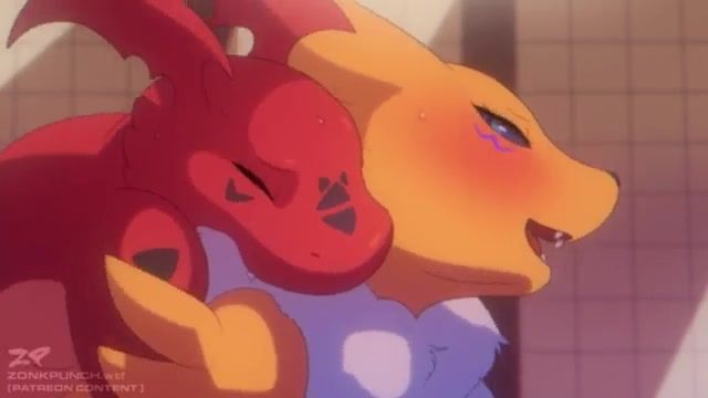 Vixen Breaksen took a huge cock of the dragon Chirizard in her mouth and began to suck it. After enjoying oral foreplay, the excited Pokemon engaged in really hard sex in the bathroom.