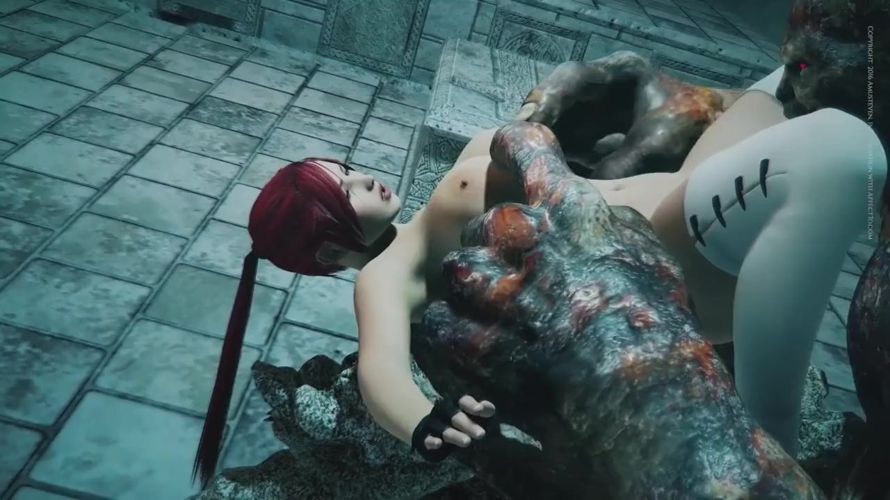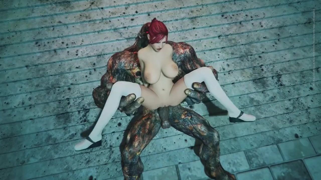 Naked 3D girl, being in an abandoned castle, met with a horrible monster. The redheaded chick with a nice figure, not scared, had sex with the monster. She plays with his giant dick, jerks his dick with her fleshy tits and sucks his dick. And then the beautiful girl fucks in the cunt with the monster and gets an unearthly high.