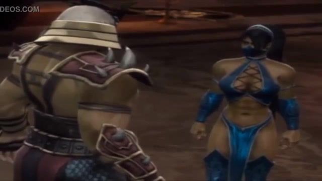While participating in a royal battle, the hot Asian girl Kitana from Mortal Kombat was supposed to kill her opponent, but she didn't. This infuriated Shao Kang and she had to make amends. The hottie went to his chambers in the evening and saddled herself with a big hard cock. While she was fucking him, Mileena peeked at them.