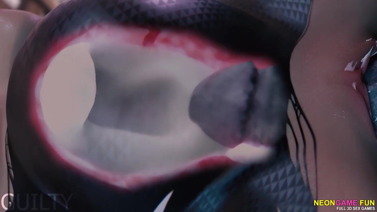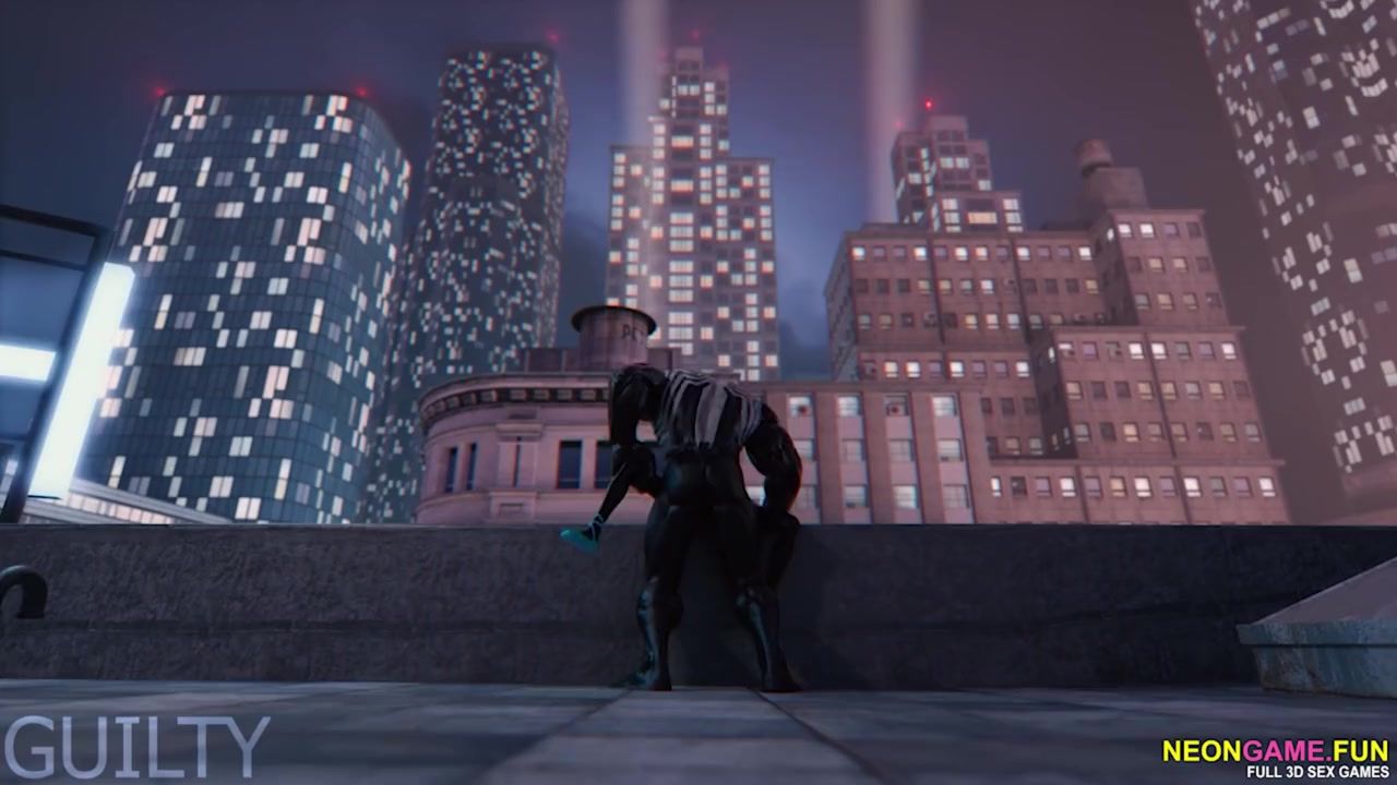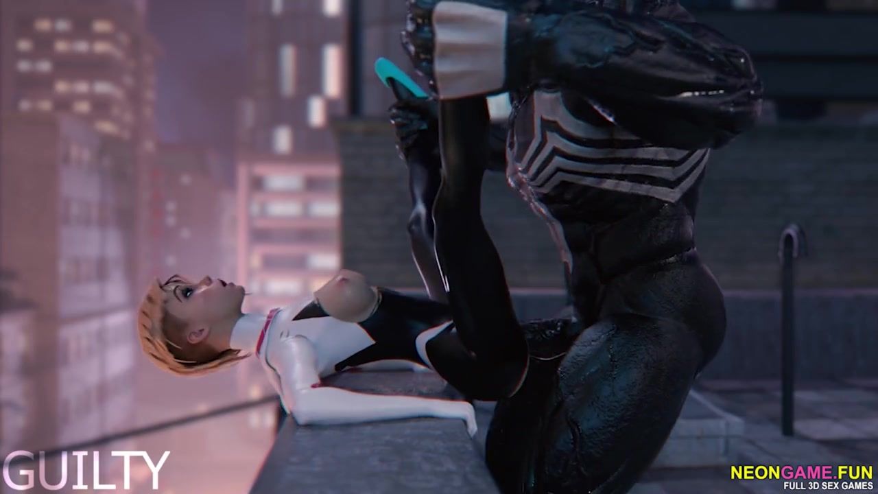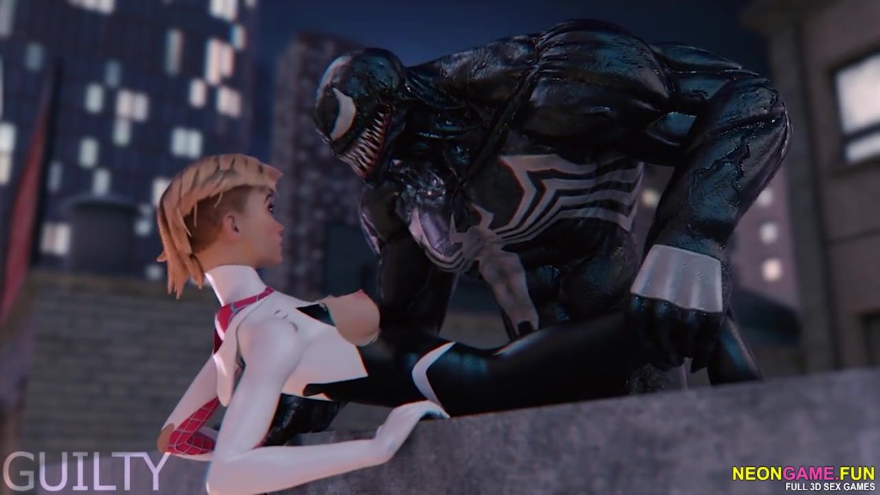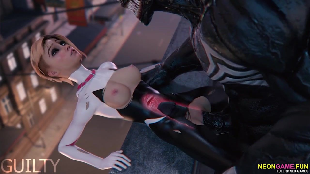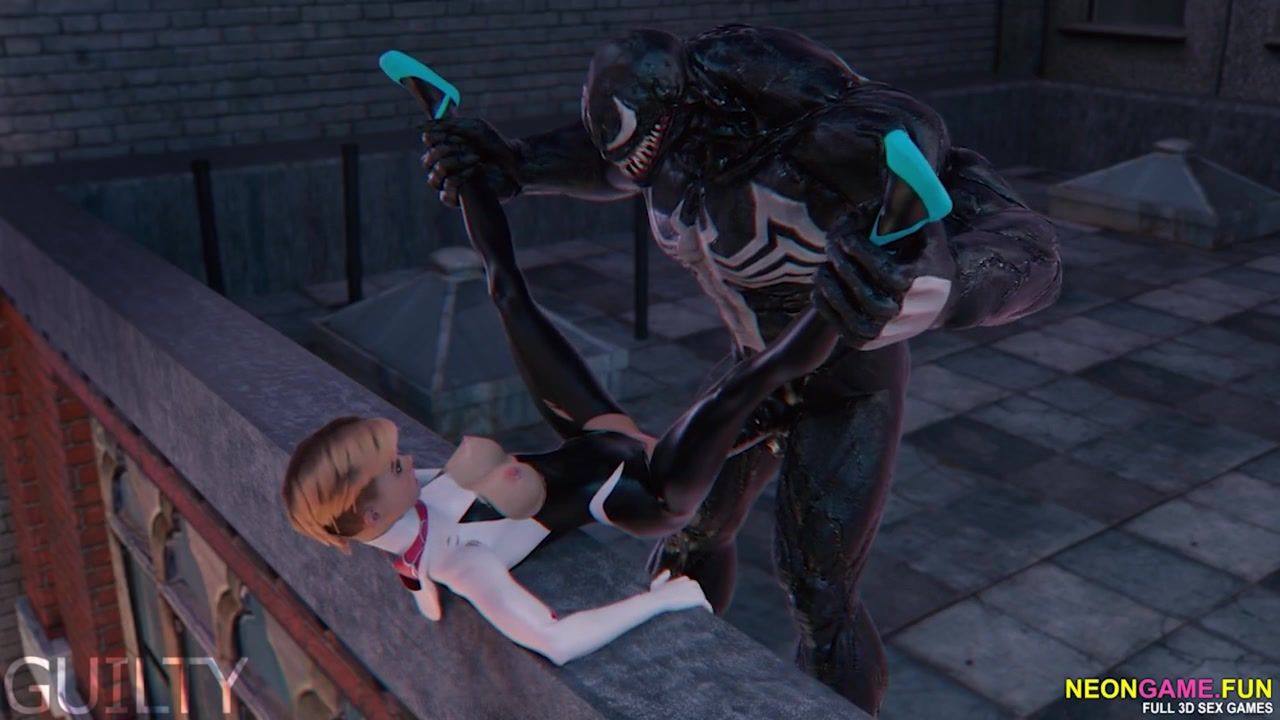 The bloodthirsty monster Venom attacked a sexy blonde and dragged her to the roof of a high-rise. She called for Spider-Man's help, but he was nowhere to be seen. The monster tore her leggings and put a huge phallus in her shaved pussy. After raping the girl, he cum inside her.