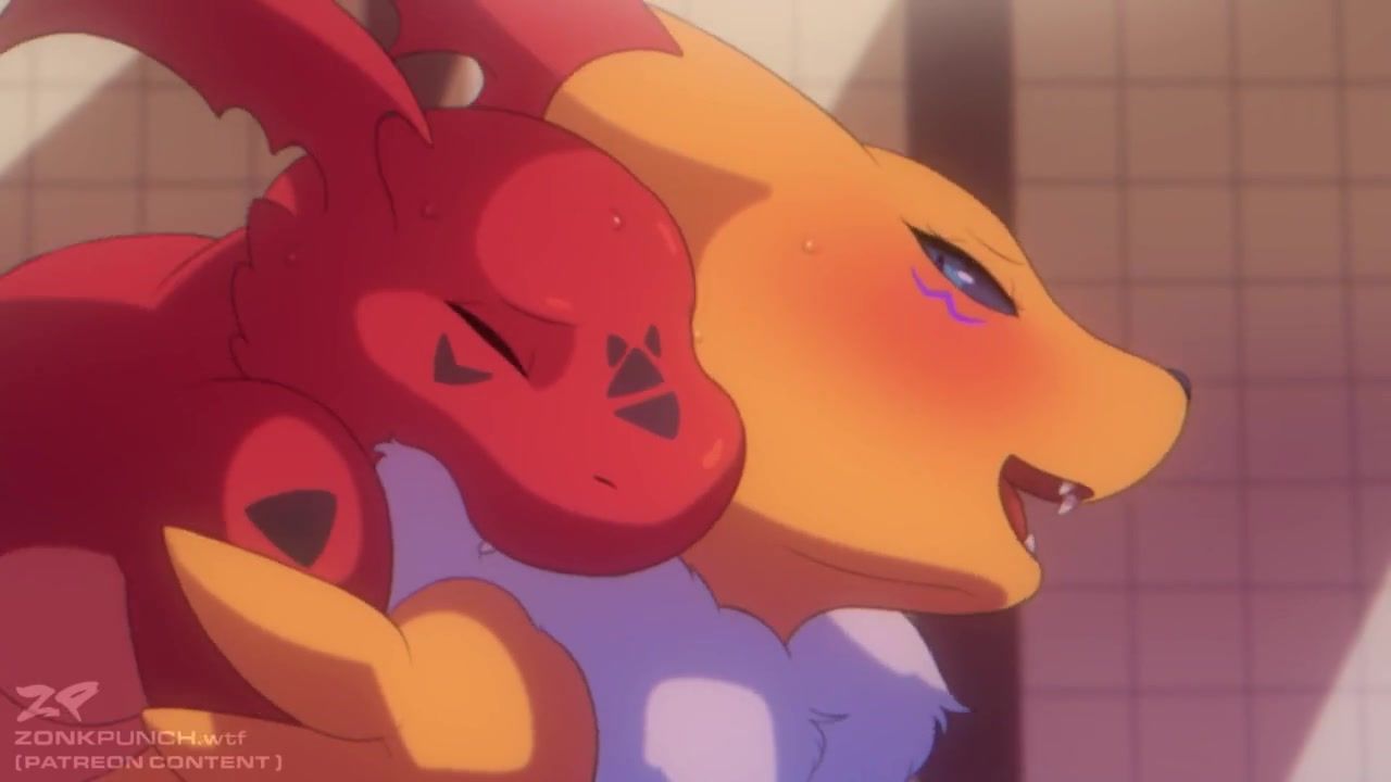 Futanari brunette Elizabeth Comstock gets jacked off by two big cocks in an animat...