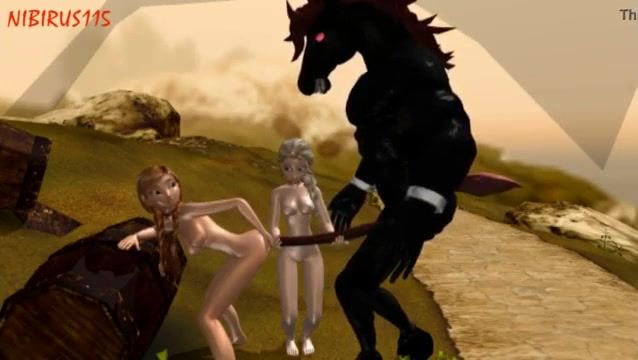 Sisters Ana and Elsa share the monster horse schlong