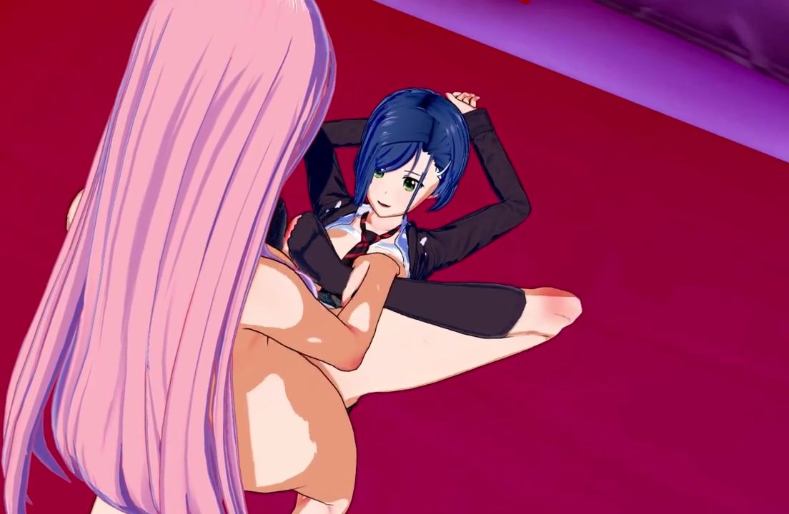 3D Zero Two chick lends her feet to milk her girl cock