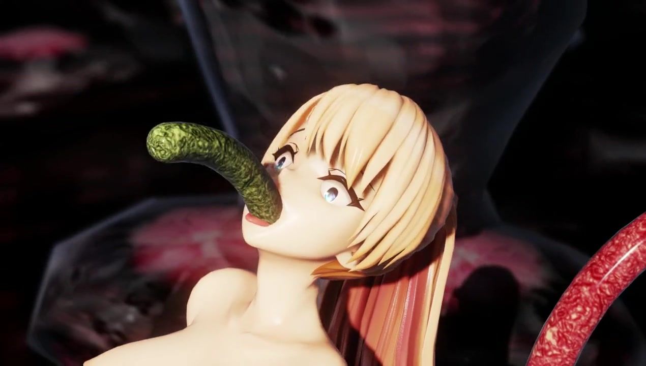 Animated brunette in stockings gives a blowjob and rides a monster cock