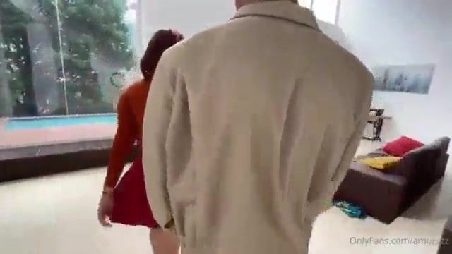 Curvy girl in the image of Harley Quinn fucks with a guy on Halloween