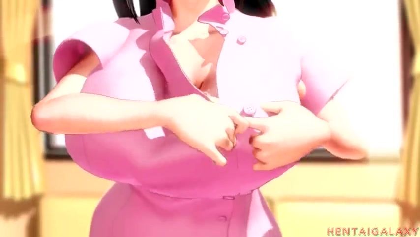 Hentai nurse with big tits jerks off and sucks teenager's cock