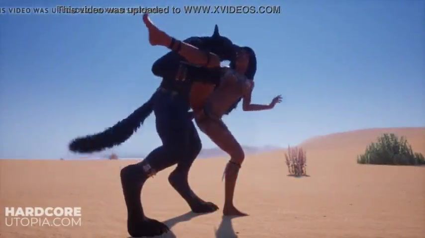Scary werewolf fucks hottie in the desert