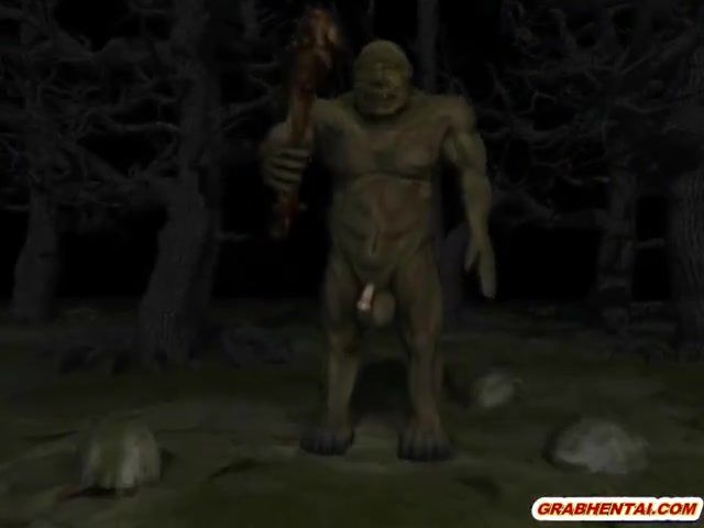Horrible goblins gang bang innocent girl from hentai cartoon in the forest