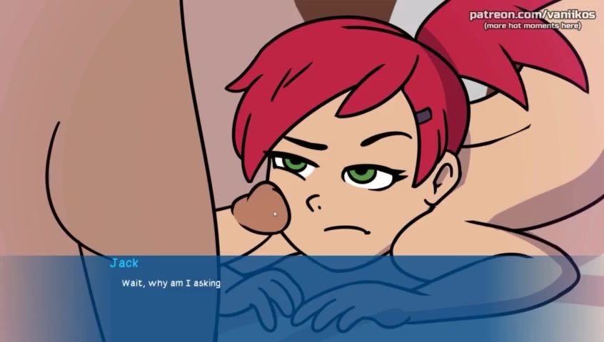 Animated girl with pigtails gives a blowjob to a zombie