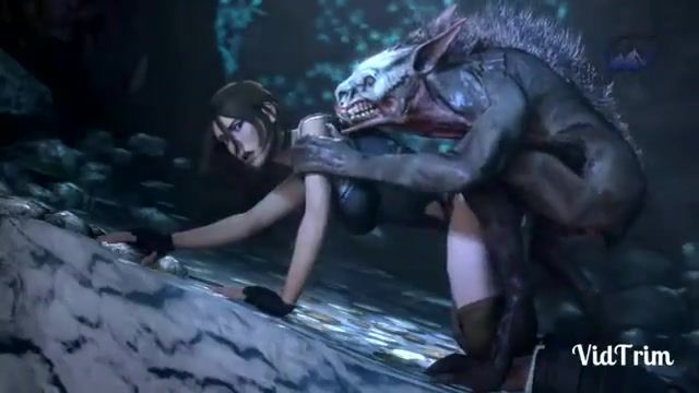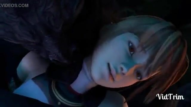 Little babe fucks monsters in a 3d threesome