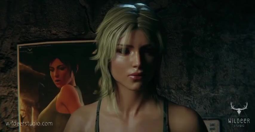 Submissive Lara Croft gets her big tits & pussy fingered