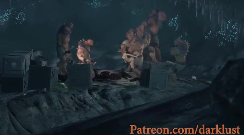 Lara Croft getting gang-banged by big-dicked beasts