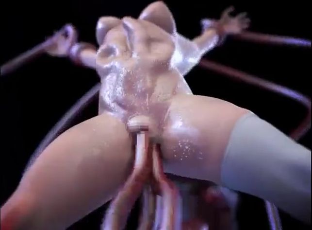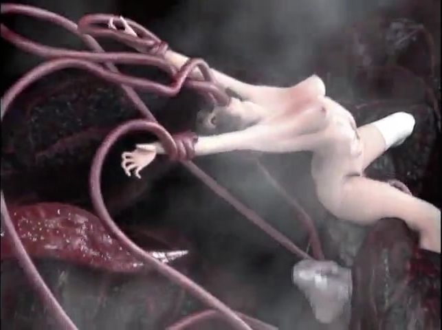 A young girl in white stockings was unlucky today. The chick, coming home from work, came face to face with a horrible monster. She tried to hide in the woods, but the giant monster found her and fucked her hard in all her holes with his long tentacles.