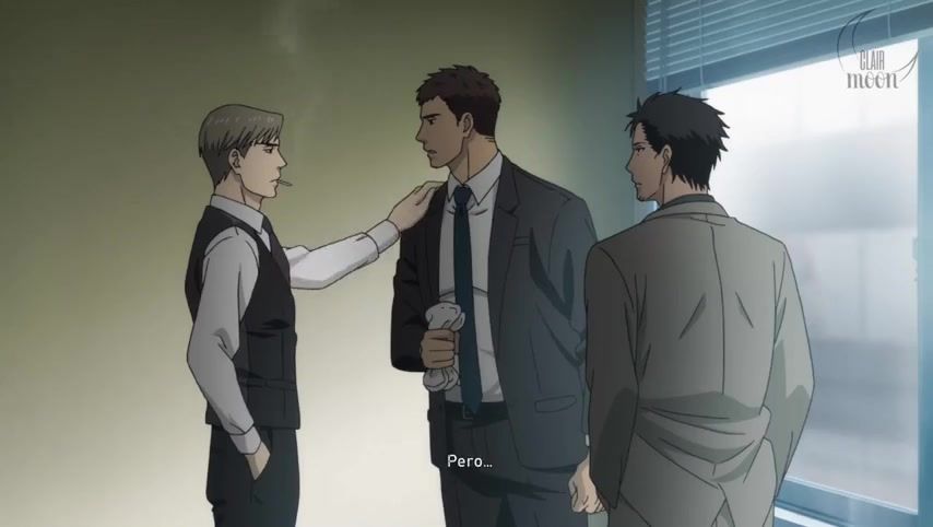 A homeless guy asked a man in an expensive business suit for help, expecting a few dollars. But the man took him with him and brought him to his office. He got the poor man a job and gave him clothes and food, but you have to pay for everything. The guy had to be a passive gay man among a whole crowd of men.