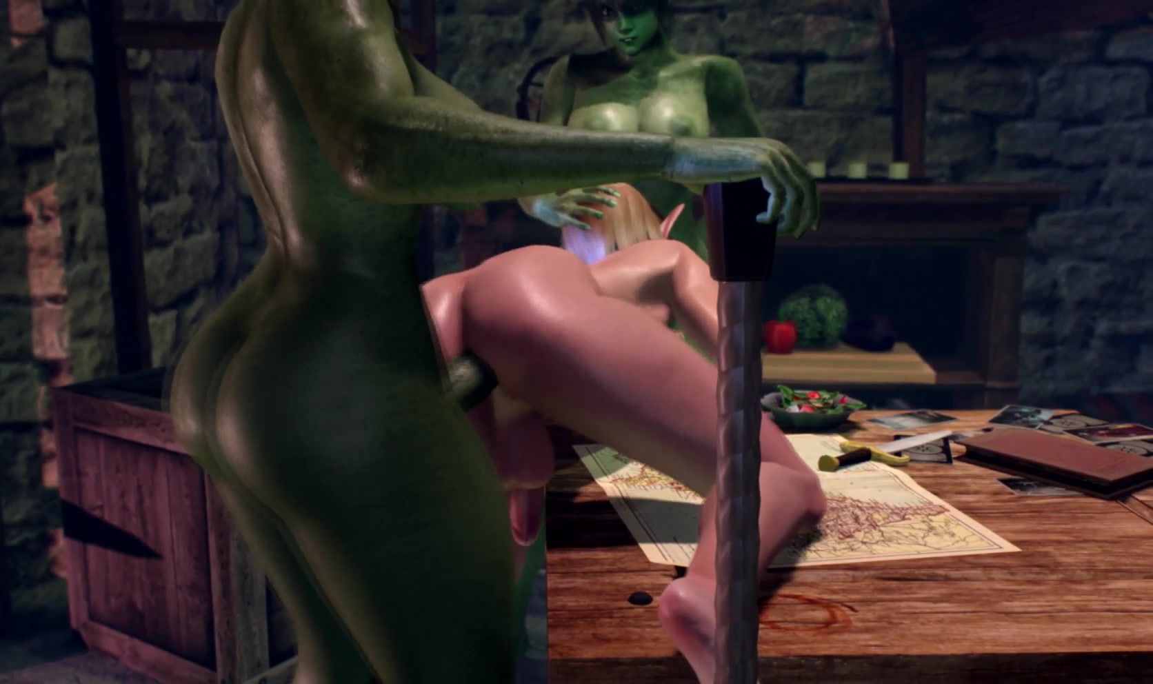 两个大futa兽人在同一时间他妈的一个诱人的小精灵在桌子上
