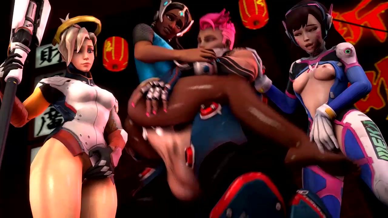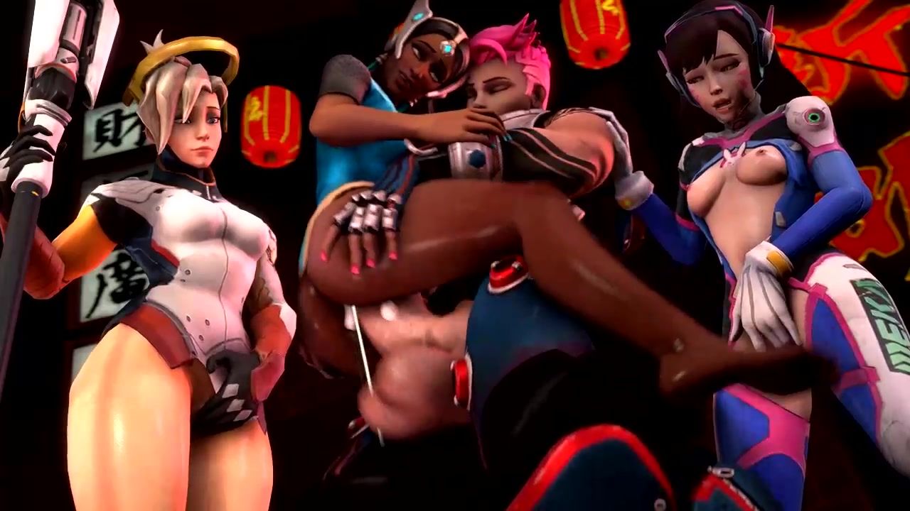 怜悯和D.Va 观看Futa Tracer和Pharah性爱